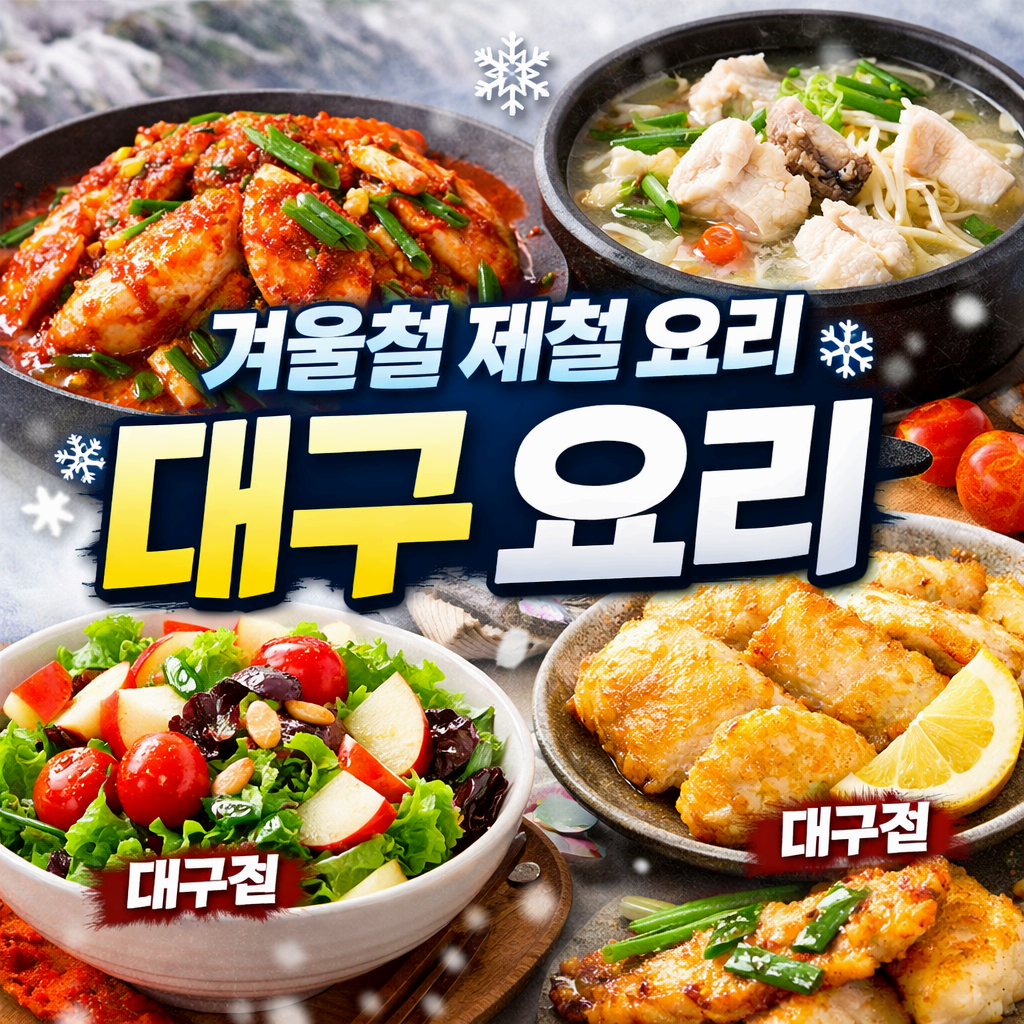 대구찜은 겨울철 제철 대구를 가장 맛있게 즐길 수 있는 요리입니다. 이 글에서는 대구찜 만드는 법과 함께 상큼한 샐러드 레시피를 추가해 겨울철 제철요리를 균형 잡힌 한 끼로 완성하는 방법을 소개합니다.겨울철 제철제료 요리 대구 요리겨울철 제철요리로 대구찜이 좋은 이유대구는 저지방·고단백 식품으로 겨울철 체력 관리에 매우 적합합니다. 특히 찜 요리는 기름 사용이 적어 겨울철 건강식, 다이어트용 겨울 제철요리, 부담 없는 집밥 메뉴로 활용하기 좋습니다.겨울 제철 대구는 살이 단단하고 비린내가 적음찜 요리는 영양 손실이 적음대구찜은 포만감 대비 칼로리가 낮음👉 그래서 대구찜은 겨울철 제철요리의 핵심 메뉴로 꾸준히 사랑받고 있습니다.대구찜 레시피 (집에서 쉽게 만드는 겨울 제철요리)대구찜 기본 재료대구 1마리..